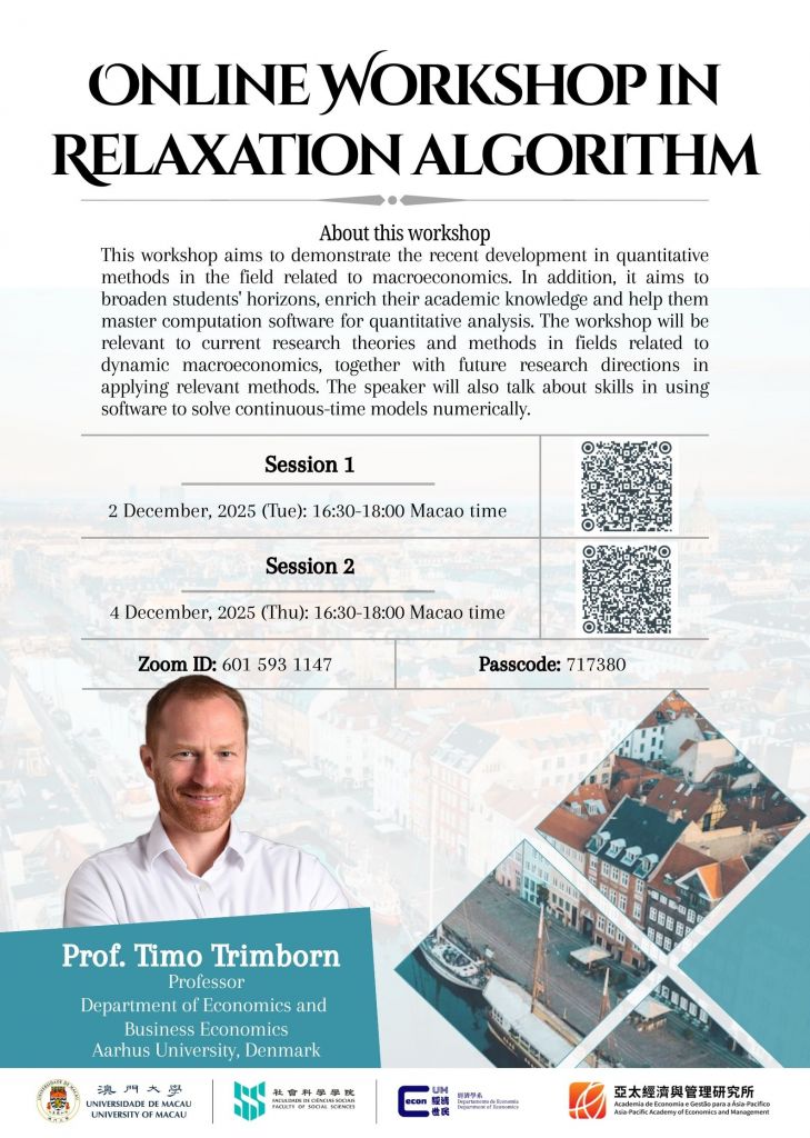 About this workshop: This workshop aims to demonstrate the recent development in quantitative methods in the field related to macroeconomics. In addition, it aims to broaden students’ horizons, enrich their academic knowledge and help them master computation software for quantitative analysis. The workshop will be relevant to current research theories and methods in fields related to dynamic macroeconomics, together with future research directions in applying relevant methods. The speaker will also talk about skills in using software to solve continuous-time models numerically.
